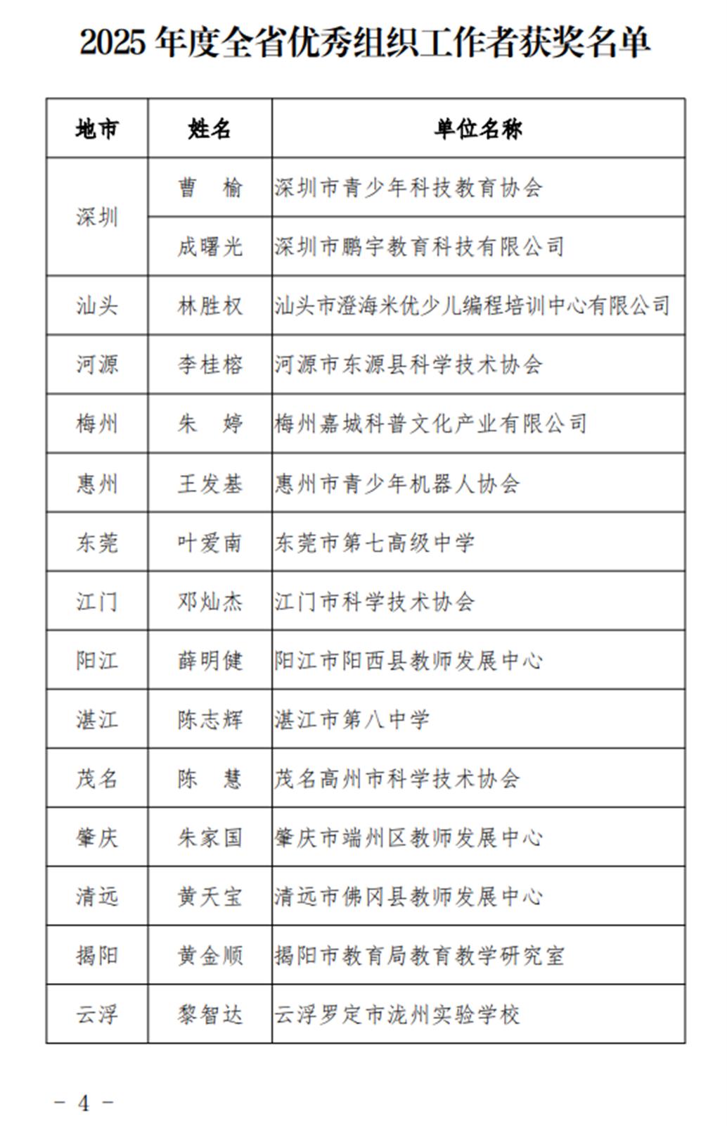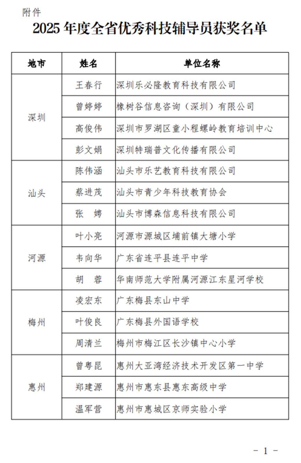2025年广东省青少年中级、初级科技辅导员专业水平认证通过名单的公示